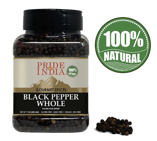 Pride of India – Black Peppercorn Whole – Gourmet & Culinary Spice – Full Bodied, Dried & Flavorful – Preservatives & Gluten Free – 8 oz. Medium Dual Sifter Jar
