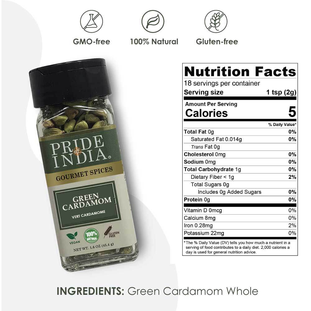 ASSURANCE OF FRESHNESS: Purity and quality is assured with Pride of India’s whole green cardamom. Our handpicked and selected variants are packed without GMO and Gluten giving you the perfect taste after every use.